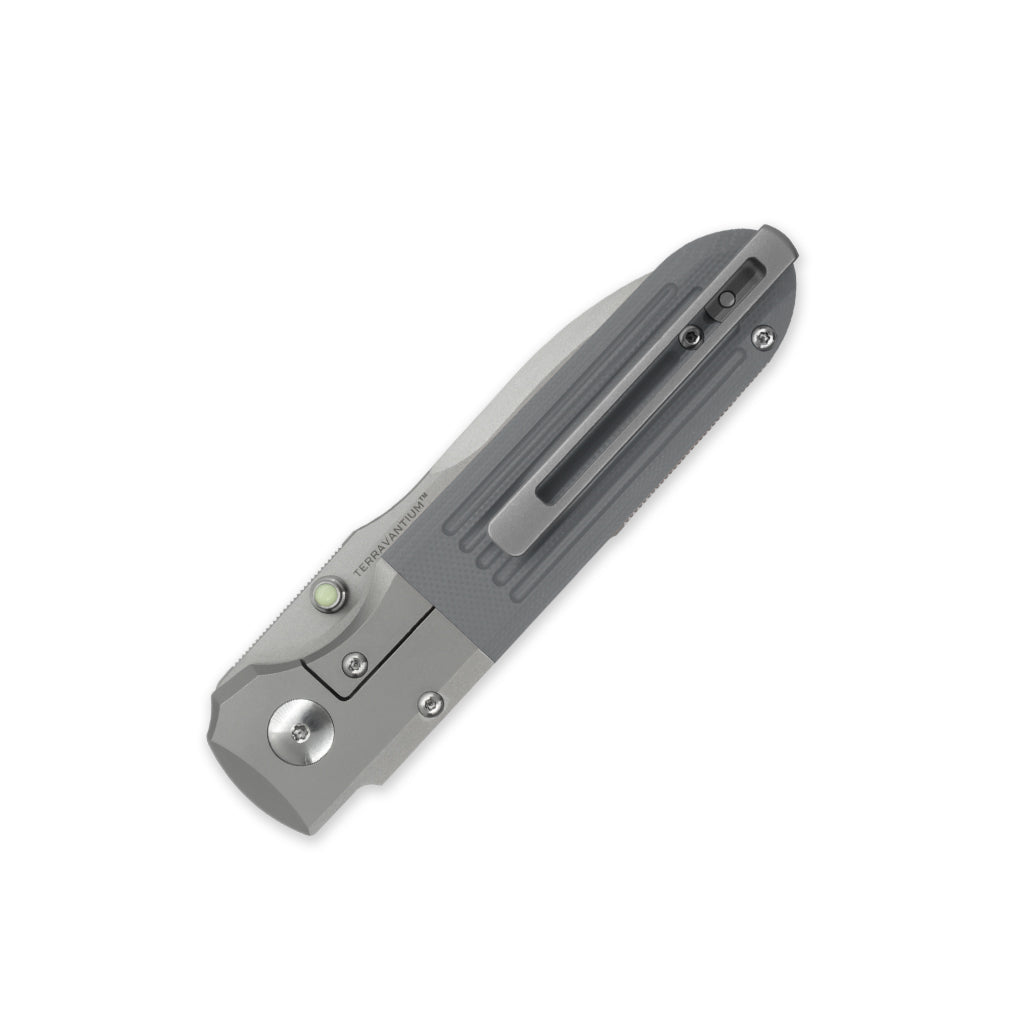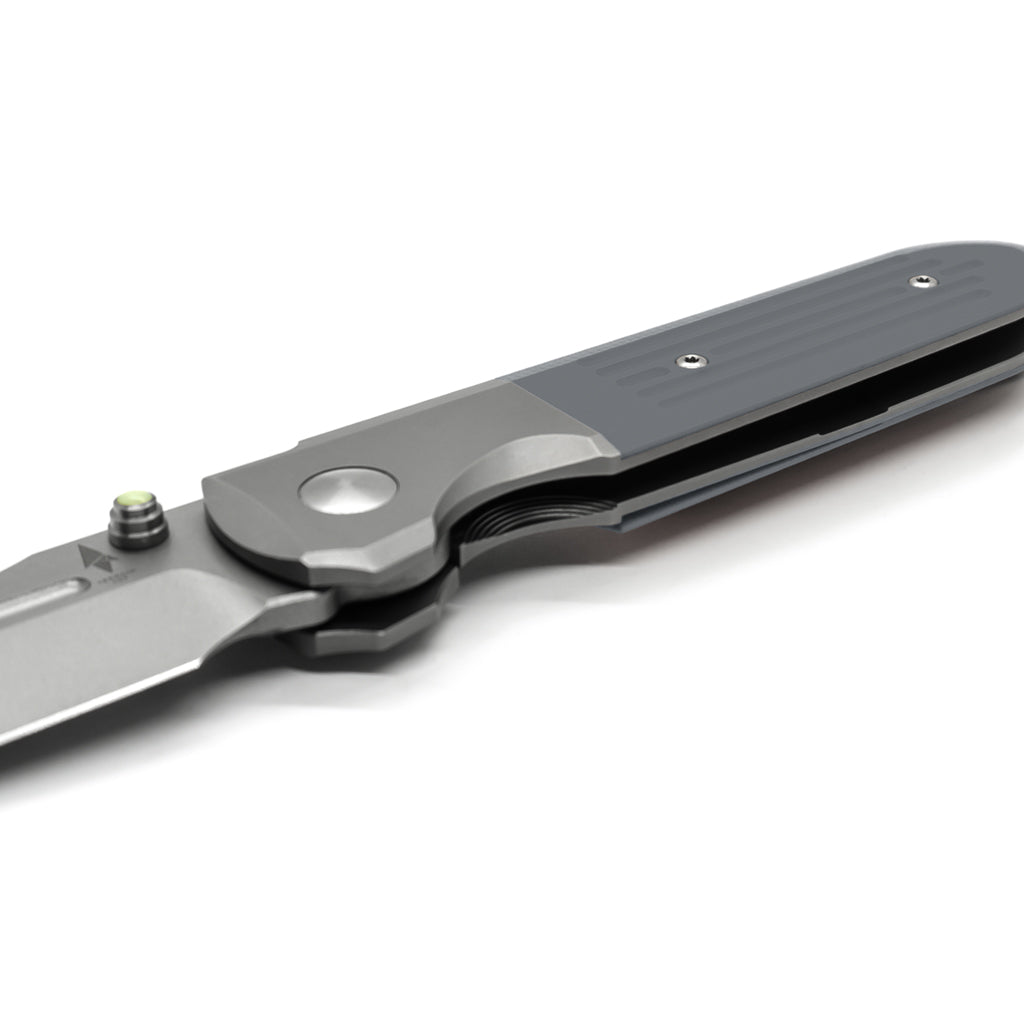 Terrain 365™ and Prometheus Design Werx bring you our latest variant of the Invictus folder design. This variant known as the Invictus-ATBSP features an integrated titanium bolster design, a slimmer profile, Terravantium™ blade, framelock, G10 scales, titanium hardware and pivot. The pivot bearings are ceramic with bronze cages, making this folder 100% non-ferrous, non-magnetic, rustproof with superlative edge holding characteristics. The integrated titanium bolster construction is perfectly paired with G10 scales for a balanced and district handle appearance. A truly all terrain-capable utility folder for EDC in any environment anywhere on land or underwater.